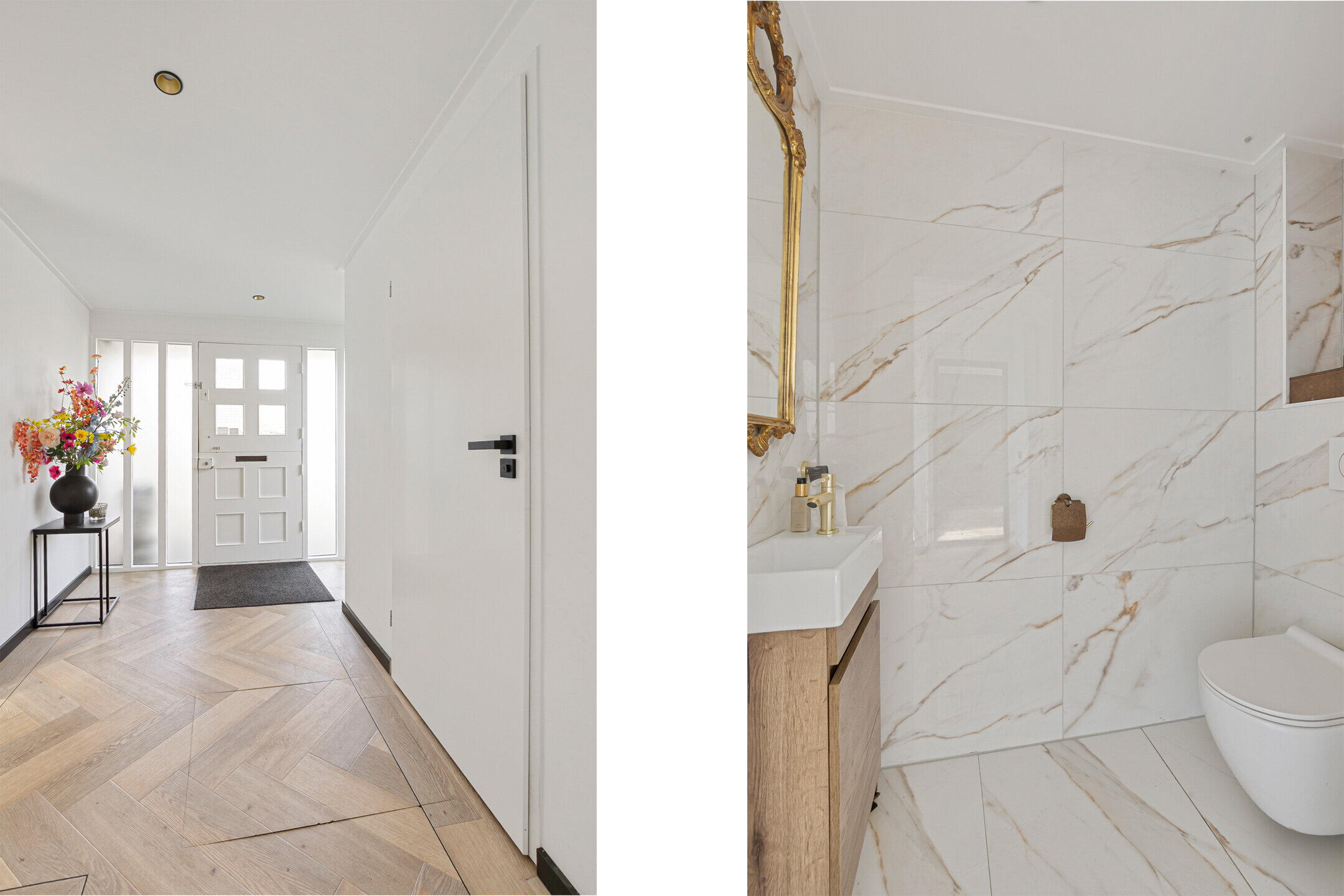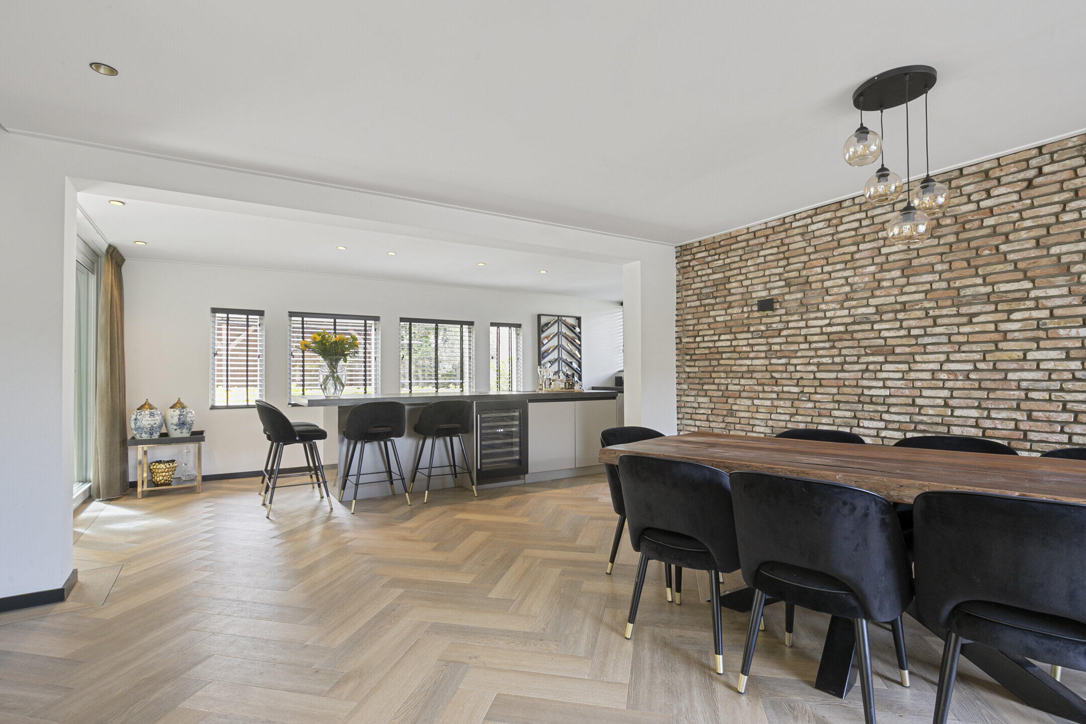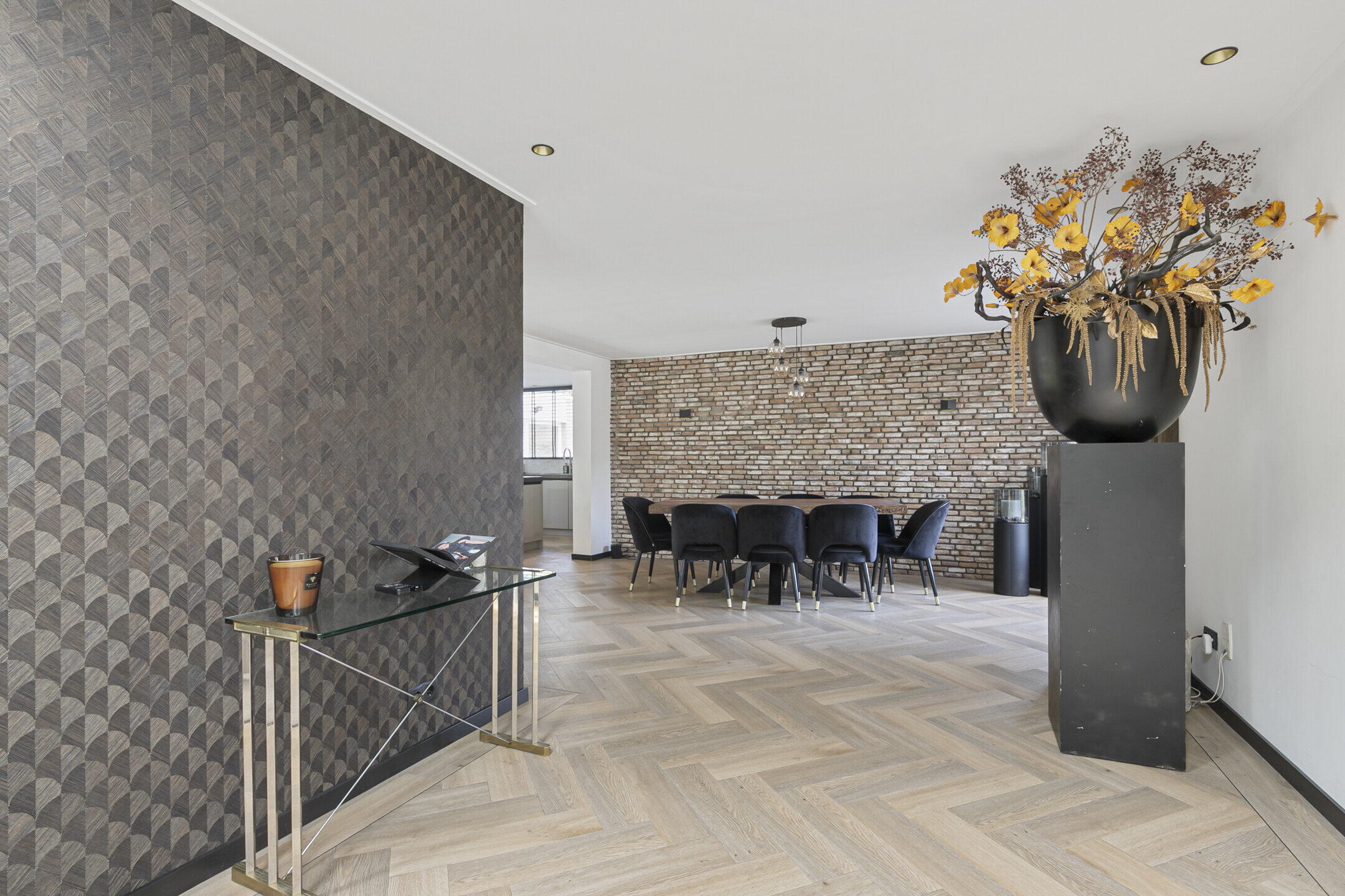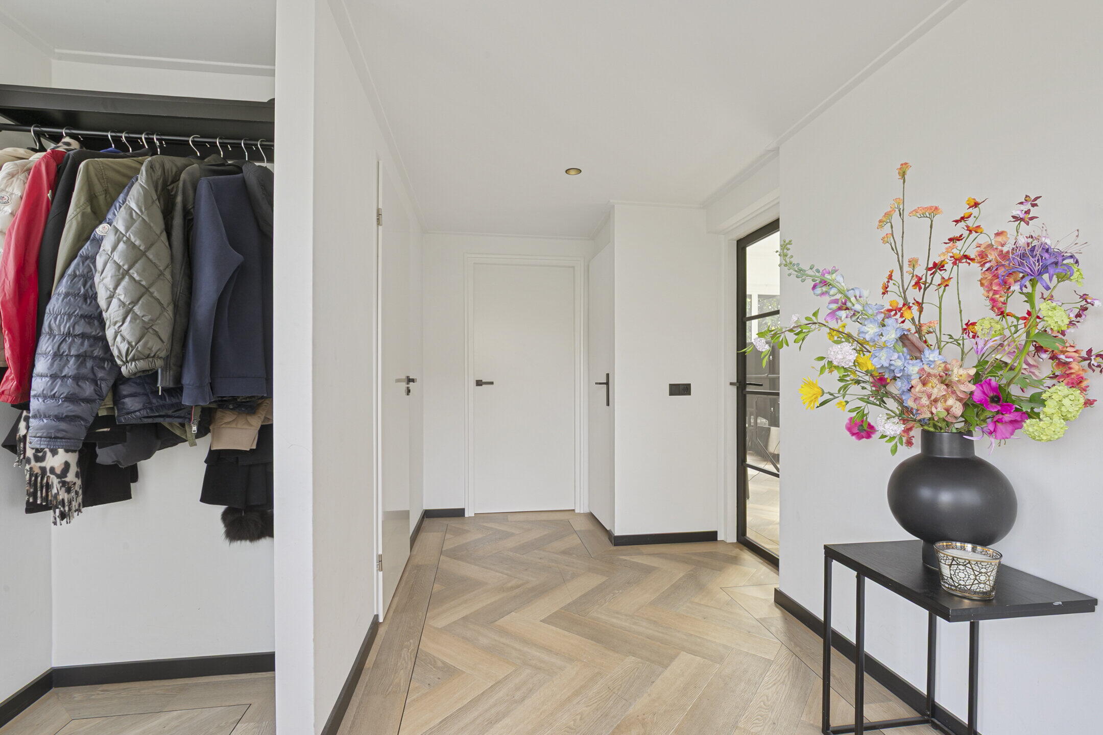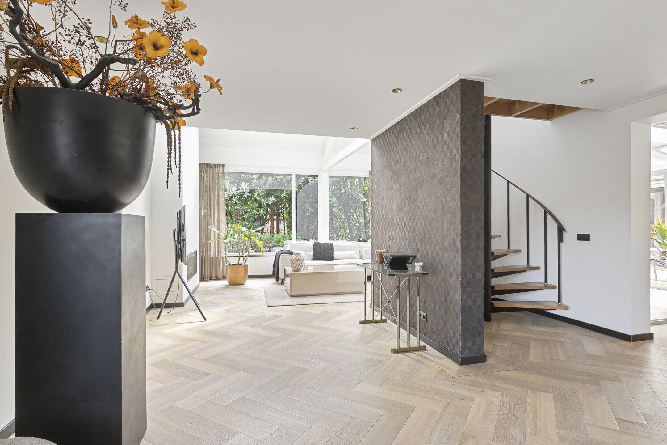 De begane grond heeft vloerverwarming met als afwerking een visgraat pvc vloer met bies, m.u.v. de werkkamer.