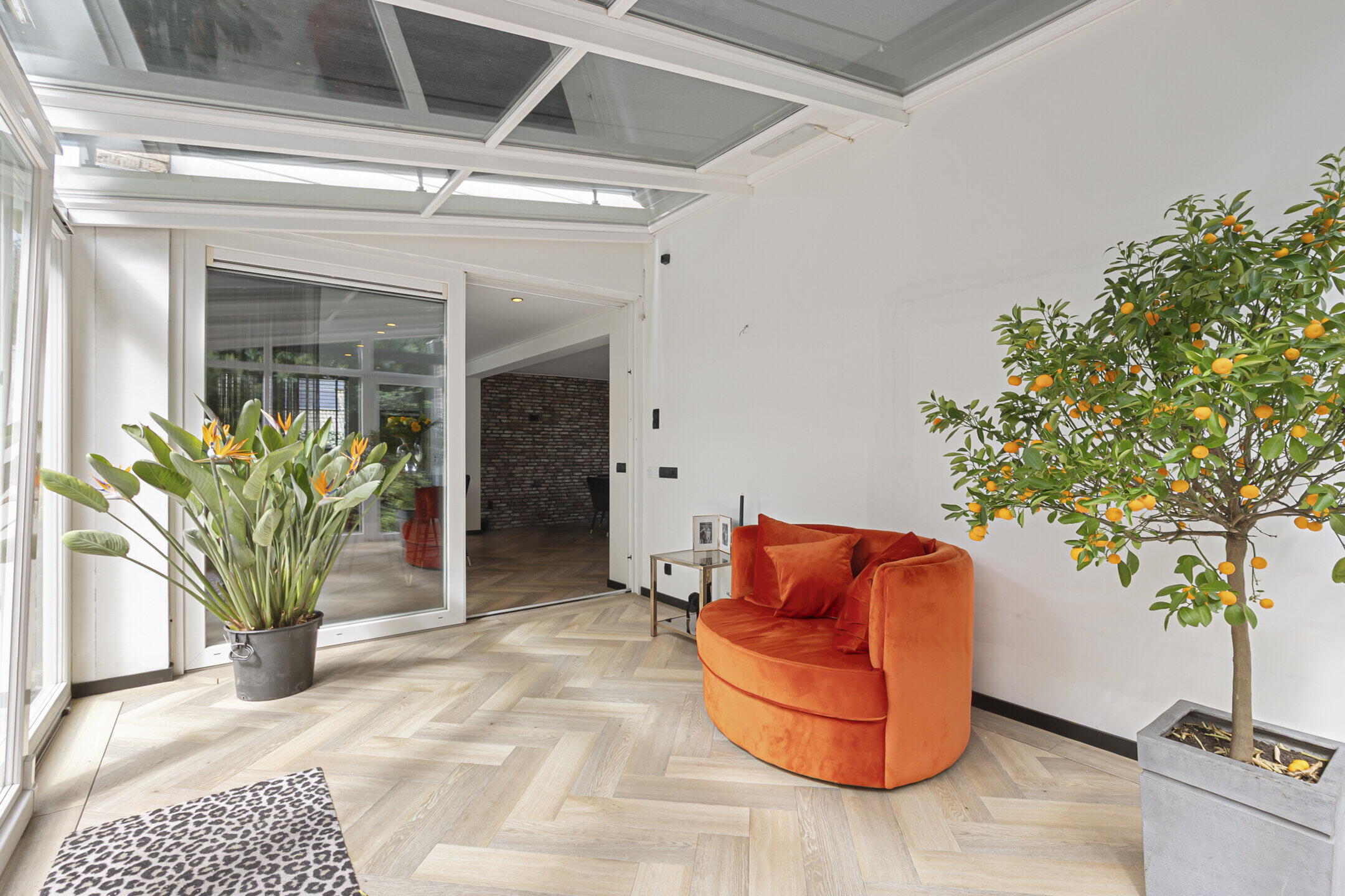 Entree van de woning in een ruime hal. De hal is voorzien van een nieuw toilet met fontein, een vernieuwde groepenkast, ruimte voor de garderobe en een aparte werkkamer. Vanuit deze hal kom je in de royaal opgedeelde woonruimte. De living is voorzien van een knusse gashaard en heeft een prettig lichtinval door de extra dakramen. Er is een heerlijk, royale woonkeuken met ruimte voor een grote eethoek. Het kookeiland is voorzien van alle luxe inbouwapparatuur en er is een tweede blok onder het raam met een leuk en vrij uitzicht. De serre is afsluitbaar d.m.v. een schuifpui en vanuit hier is er toegang tot de achtertuin ook d.m.v. een schuifpui. Naast de keuken is de praktische bijkeuken voorzien van de wasmachine en droger aansluitingen. Vanuit hier is er toegang tot de oprit en tuin. Aansluitend aan de bijkeuken is de technische ruimte met de opstelling van de c.v. combiketel, bouwjaar 2021.